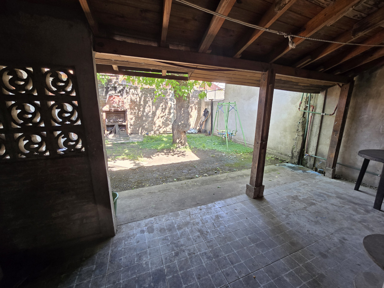 La casa consta con entrada y jardín al frente, con cocina comedor integrados, baño completo, dos dormitorios y galería, en el lateral derecho en planta baja se encuentra construido 1 monoambientes y en planta alta 1 monoambiente
