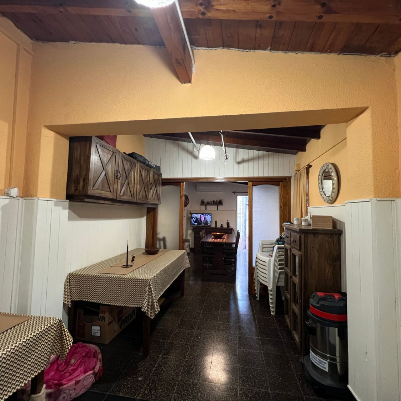 Living amplio con piso de parquet